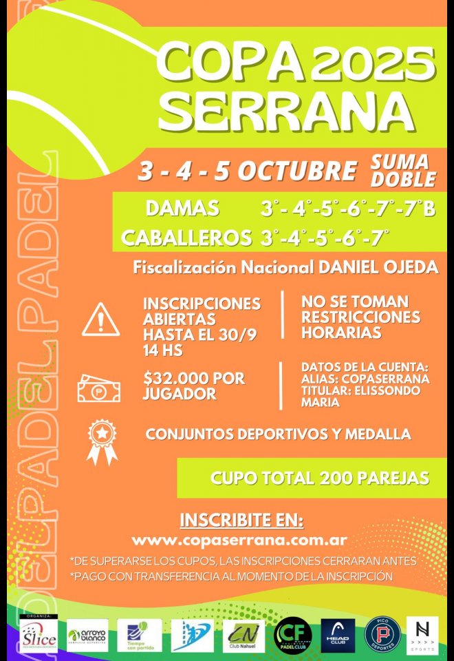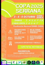 »» Evento: Copa Serrana "10ma fecha" ULTIMA FECHA "Suma doble" »» Localidad: Tandil »» Fechas: 03/10/2025 al 05/10/2025