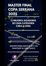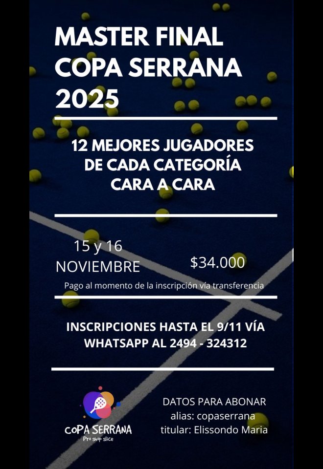»» Evento: Master Final Copa Serrana 2025 »» Localidad: Tandil »» Fechas: 15/11/2025 al 16/11/2025